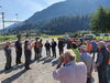 Das Floss, über den kleinen Badeteich, musste natürlich noch auf Almatraktauglichkeit überprüft werden. Kurz gesagt, Prüfung nicht bestanden, wobei nicht ganz geklärt ist wessen Schuld es ist, die des Flosses oder des Kapitäns mit seinem Team? Dank des Fahrwindes auf der Rückfahrt trockneten Kleider, Schuhe und Mensch. Nach dem Versamertobel, mitten im Swiss Grand Canyon legten sie einen letzten Kaffeehalt ein. Wie der Tross wuchs, so schrumpfte er auch wieder, bis am Ausgangspunkt wieder nur ein paar wenige übrig blieben.
