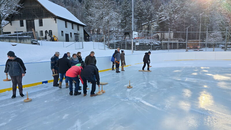 Im 3. Anlauf hat es endlich geklappt. Wir konnten Eisstock spielen gehen, es hatte Eis.