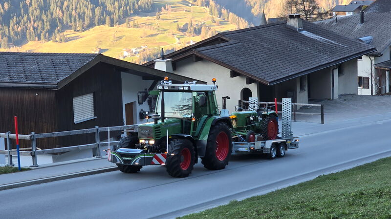 Es haben sich 13 Traktoren mit Fahrer am frühen morgen (07:15 Uhr), bei kühlen Temperaturen, aber wolkenlosen Himmel, auf den Weg nach Valbella gemacht.