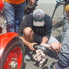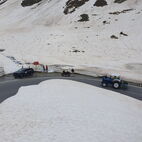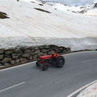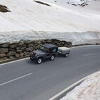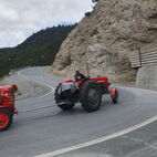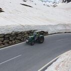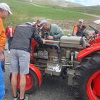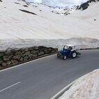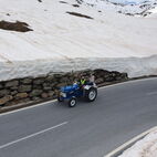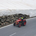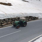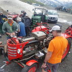 Nun war die Reihe zu streiken, am Traktor des Präsidenten, die Lichtmaschine verweigerte nun den Dienst und lief heiss. Kurzerhand wurde die Abschleppstange montiert und der Traktor die Passstrasse hinaufgezogen. An der Mautstelle, kurz vor der Passhöhe, stoppte der Tross. Hier wurde das Werkzeug hervorgeholt und die Lichtmaschine ausgebaut, Elektrik demontiert, notdürftig, im Schnee, gekühlt und gereinigt und wieder montiert. Fortan konnte der Traktor wieder ohne Unterstützung weiterfahren. Auf der anderen Seite des Jochs führte sie die Strasse ins Passaiertal runter. In St. Martin nächtigten sie dann das Nächste mal.