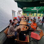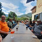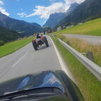Weiter ging es das Unterengadin runter, in Martina verliessen sie dann die Schweiz. Unterwegs wurde dann ein Marend eingekauft und später gegessen. Auf dem Weg nach Zams, war die Strasse teilweise so steil, dass die alten Kämpfer arg ins Schwitzen und Schnaufen kamen. Einer erlitt den Hixgi, sprich Schluckauf und verweigerte kurze Zeit den Dienst. Dort wurde eine Tankstelle geplündert, bevor dann das Hotel angefahren wurde