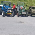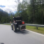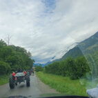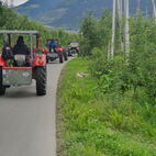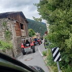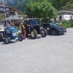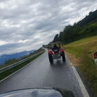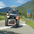 Die Engiadiner Fraktion der Almatraker organisierte wieder eine mehrtägige Reise ins angrenzende Ausland und die Mittelbündner durften mitfahren. Frühmorgens, am 21. Juni, startete die grosse Reise in Zuoz, das Unterengadin runter, in Zernez stiessen zwei Mittelbündner Gespanne dazu. In Scuol, beim Kaffeehalt, war dann der Tross komplett. Bestehend aus 11 Traktoren, ergänzt durch zwei Jeeps, einen Haflinger und einen PW.