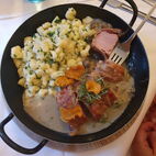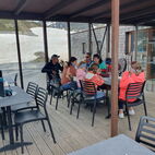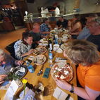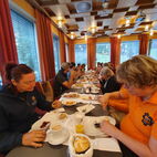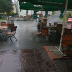 Als sie beim Nachtessen waren, kübelte es wie aus Eimern, zum Glück waren sie nicht mehr auf der Strasse unterwegs.